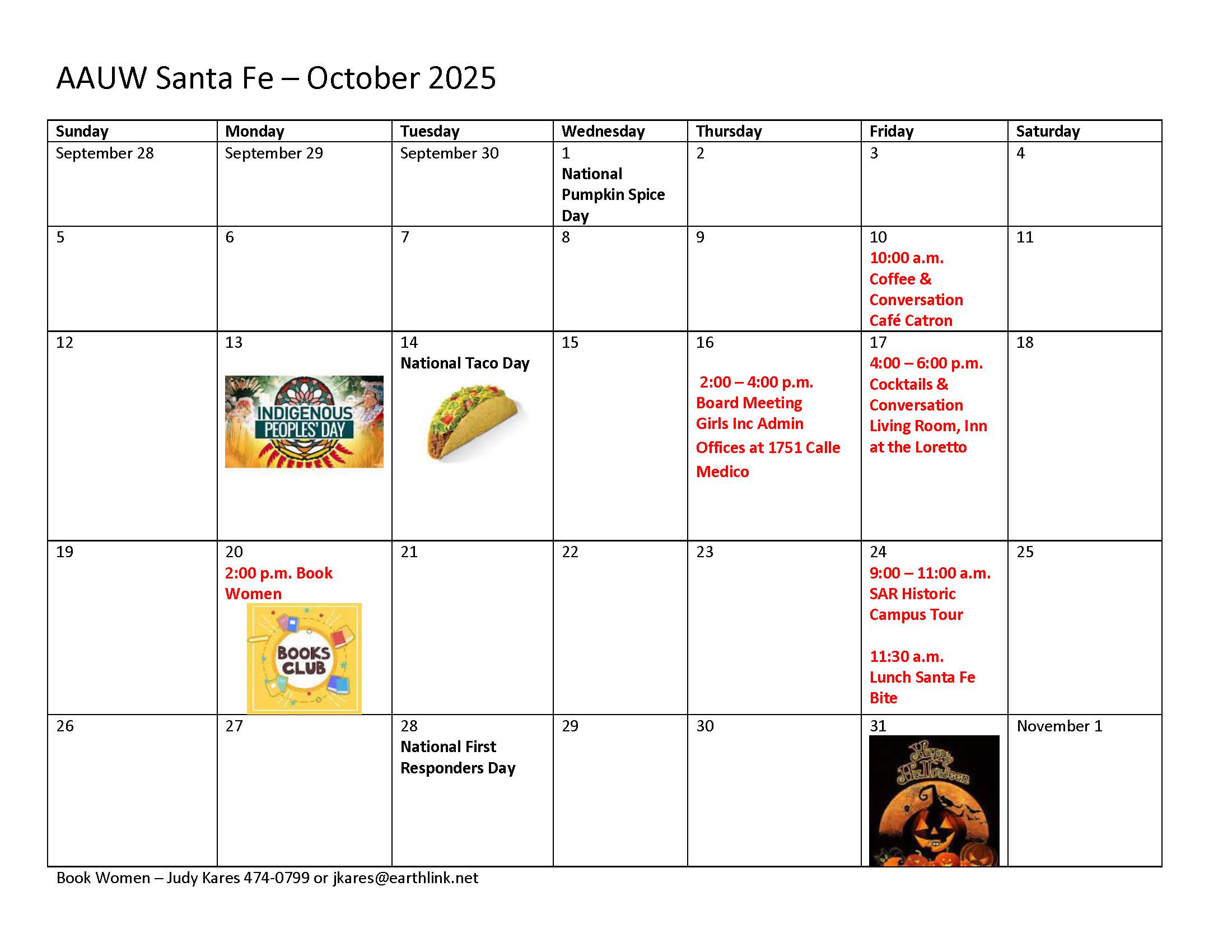 Calendar 2025 Calendar of Events Click on the calendar for a larger view. October 2025 September 2025